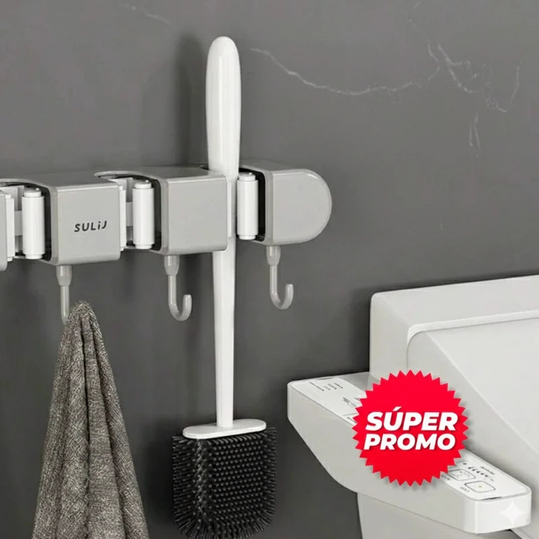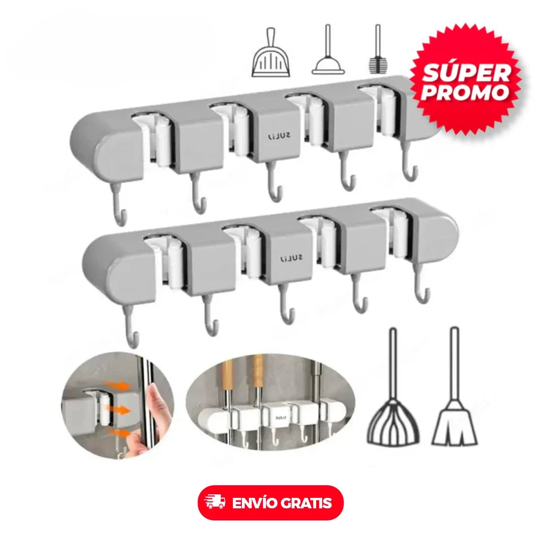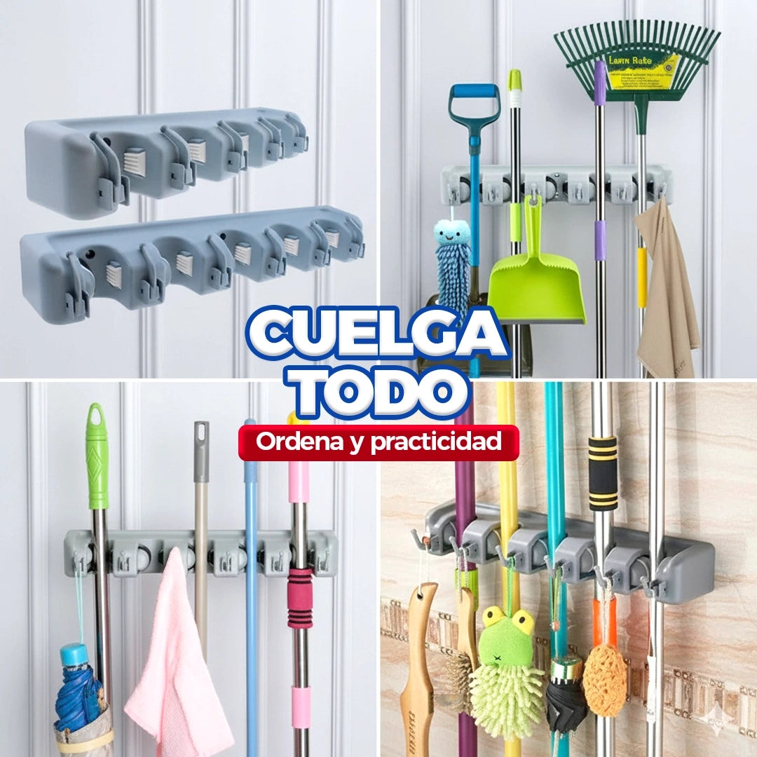 Simplifica tu vida con nuestro práctico CUELGA TODO. Ideal para colgar traperas, escobas y otros objetos en tu hogar, patio o cocina. Libera espacio y evita el desorden, es resistente, duradero y ecológico.